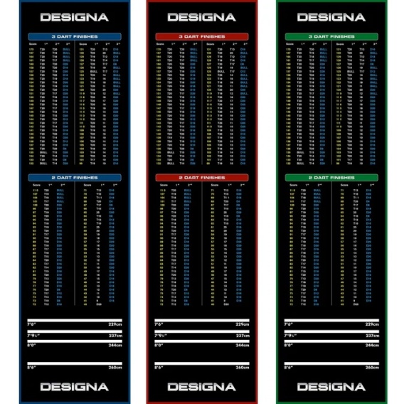 Designa Checkouts Carpet Dart Mat. Wysokiej jakości dywanowa mata do darta z gumowym antypoślizgowym spodem.