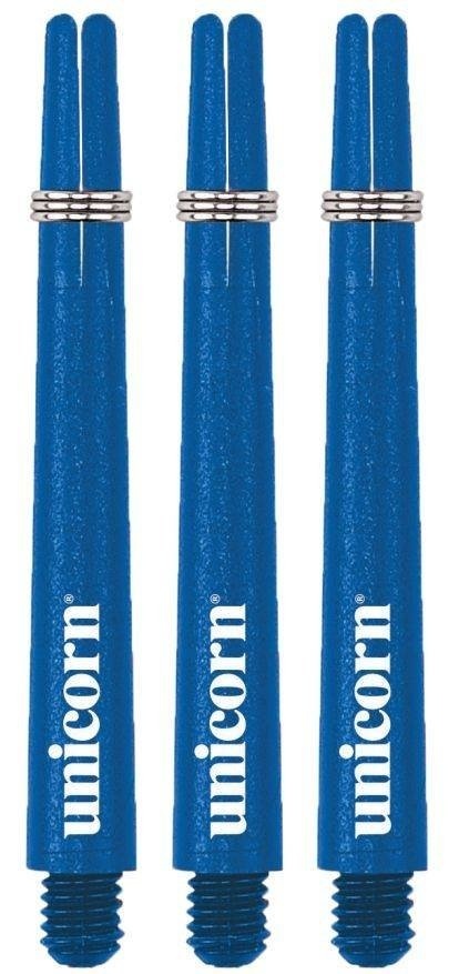 Wytrzymałe i lekkie shafty do darta marki Unicorn wykonane z nylonu, zapewniające stabilność lotu i pewne trzymanie piórka dzięki systemowi ring.